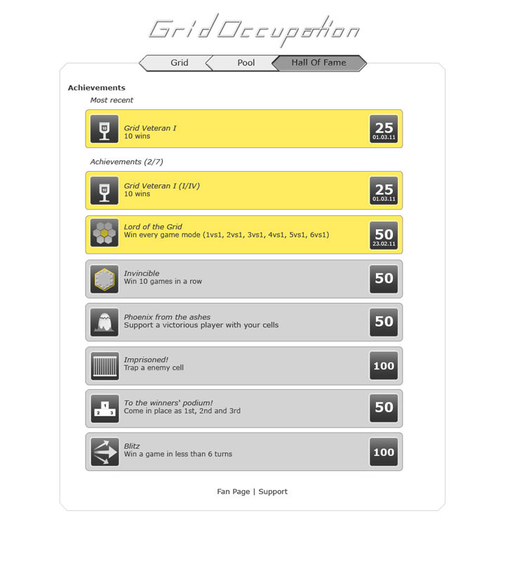 The goal of the game is to conquer as many fields as possible within a fixed period (eg. 24 hours / 72 hours / 1 week). Clue in winning the game is that you can conquer the next field only within a fixed time. Time is of the essence. Take strategically important positions first to gain an advantage! No game similar. Every game is unique. Even if everyone is playing for themselves, it is possible to gang up to outmaneuver a third player!